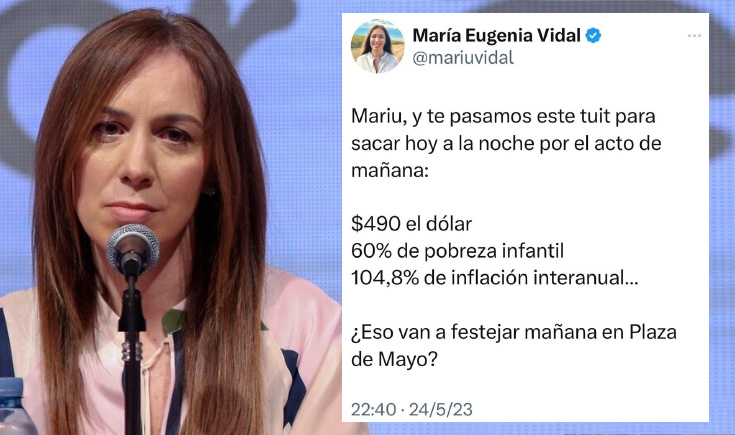 Política El papelón de María Eugenia Vidal en Twitter: le dijeron qué publicar y copió hasta las instrucciones La exgobernadora de la provincia de Buenos Aires fue blanco de burlas en las redes sociales. Así fue el polémico tuit de Vidal. 25/05/2023